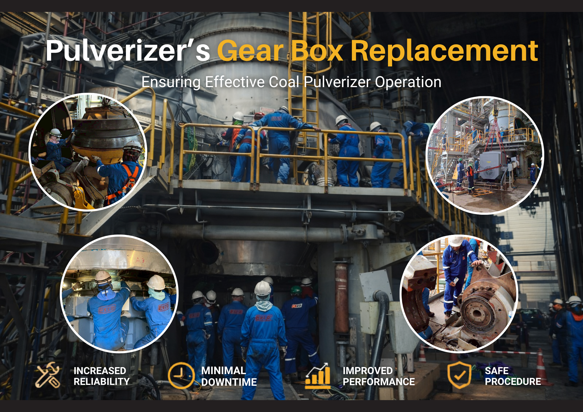 ESCO ดำเนินงานเปลี่ยน Gearbox ของ Pulverizer ณ โรงไฟฟ้า GHECO One เพื่อเพิ่มความพร้อมใช้งานและความน่าเชื่อถือของระบบเตรียมเชื้อเพลิง โดยควบคุมงานยก-ติดตั้ง-ตรวจสอบภายใต้มาตรฐานความปลอดภัยและคุณภาพ