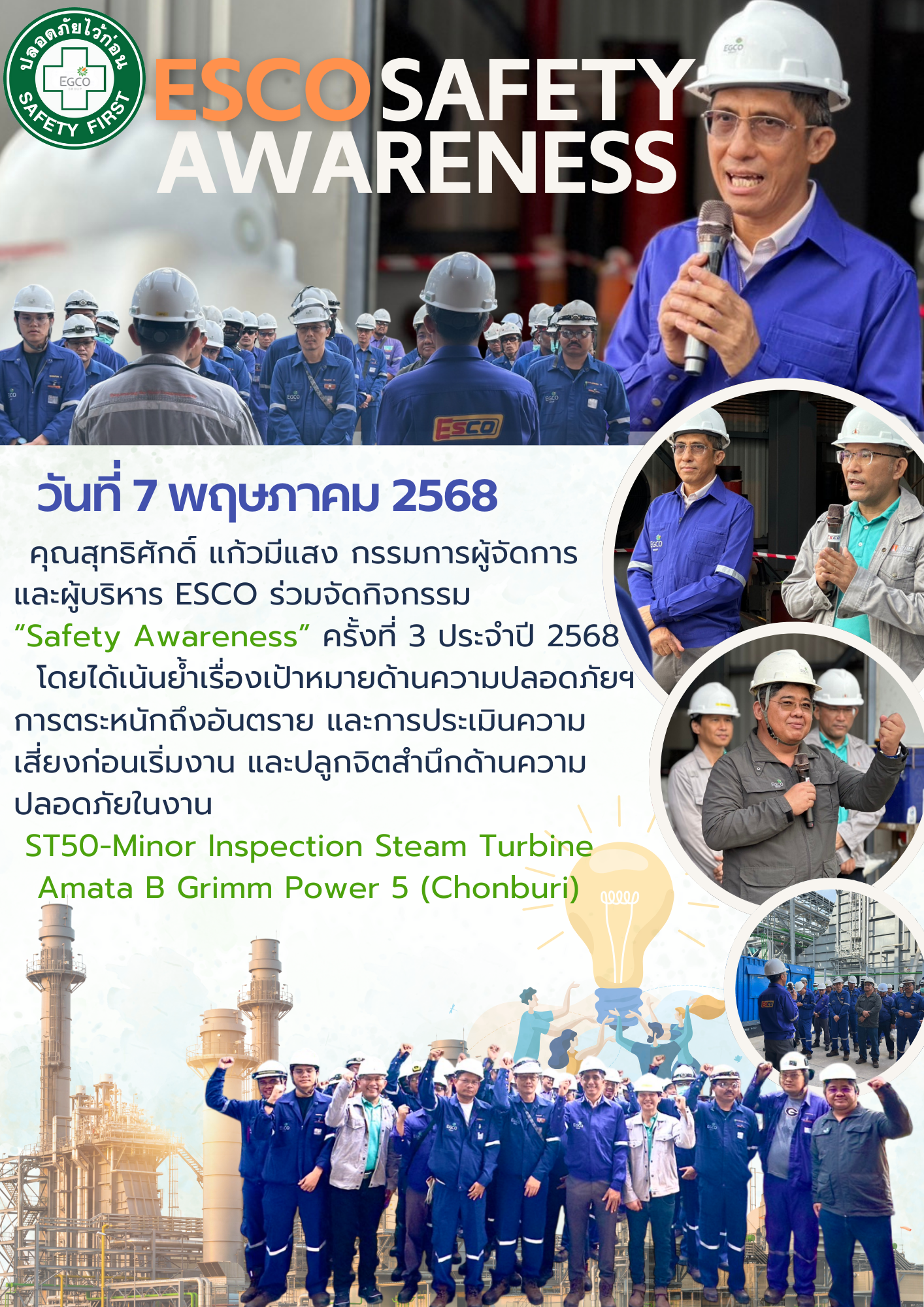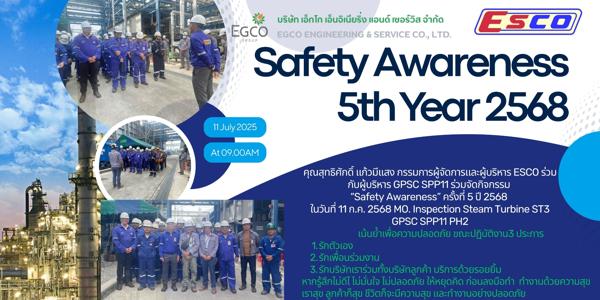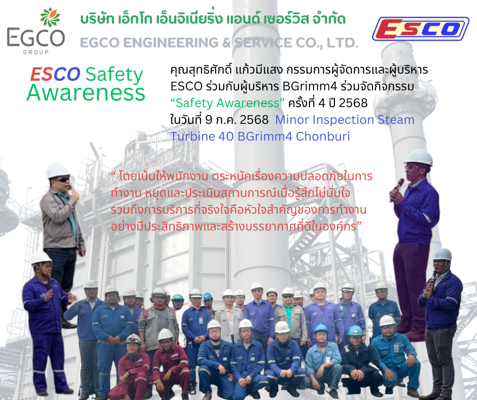 ESCO จัดกิจกรรม Safety Awareness ครั้งที่ 6 ประจำปี 2568 เสริมวินัยความปลอดภัยในงาน HSA-T02 โรงไฟฟ้าหงสา